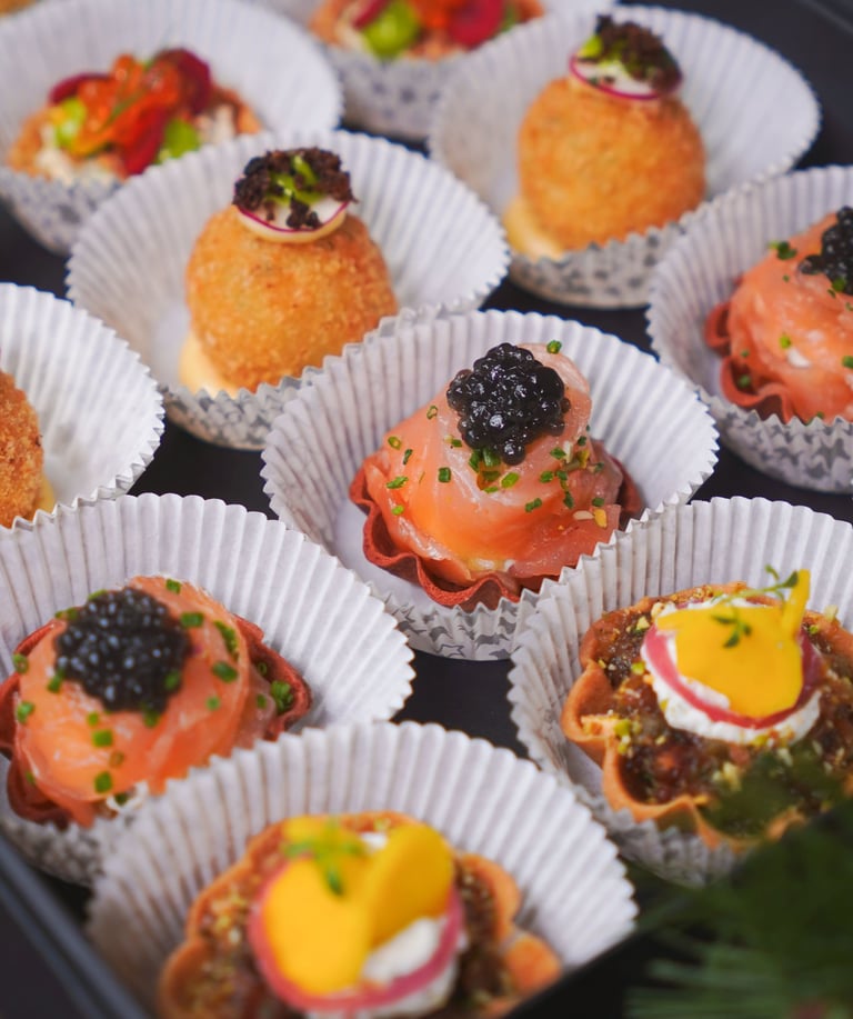 Tartaletė su sūdyta lašiša ir kreminiu sūriu su krienais